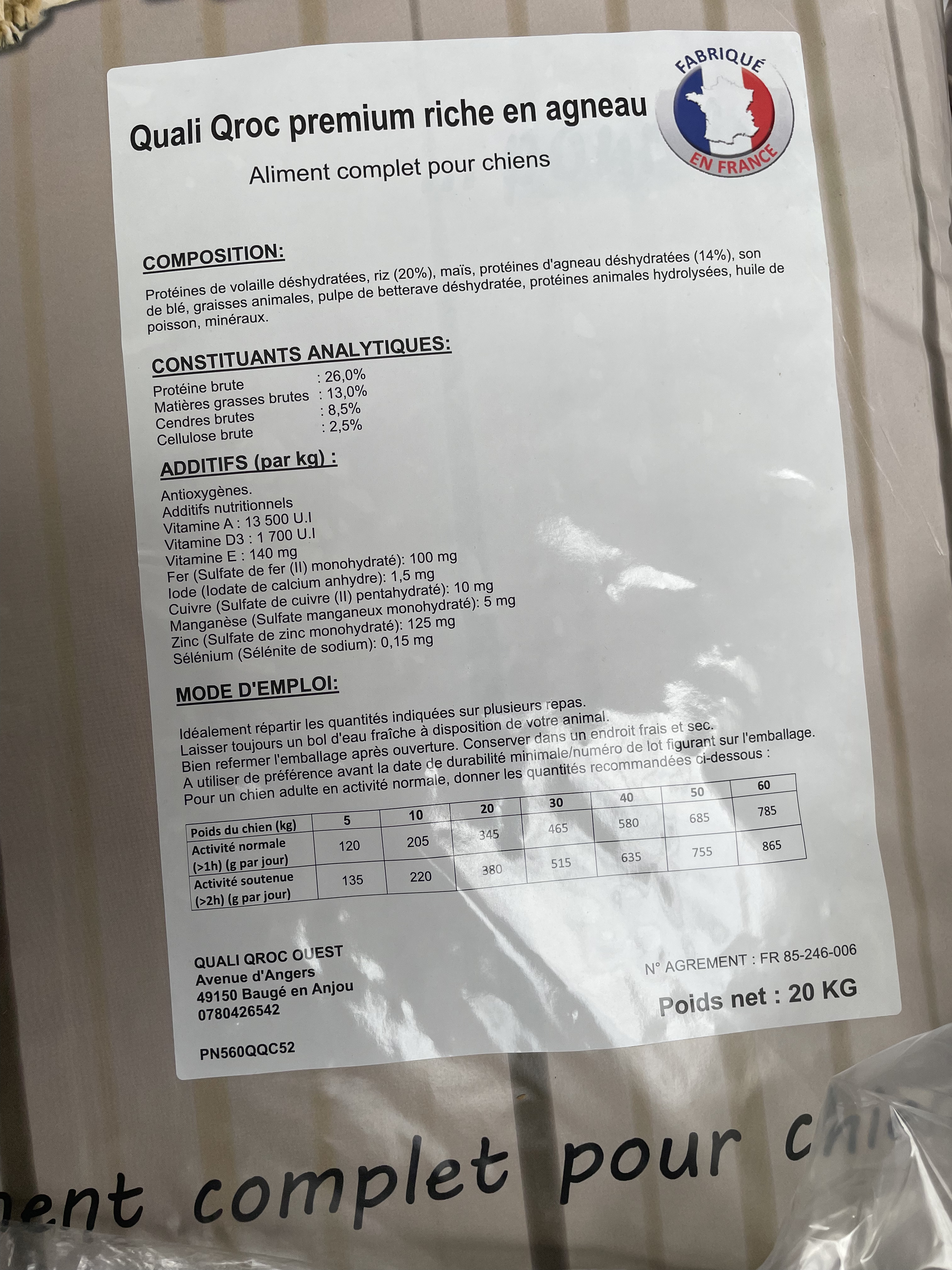 Ces croquettes sont de fabrication 100% française de qualité PREMIUM (haut de gamme). Le riz et l'agneau sont deux matières premières de très hautes qualités nutritionnelles pour le chien. Cela en fait une croquette qui se digère bien et qui convient même aux chiens sensibles. Cette formule 26/13 couvre les besoins de la plupart des chiens adultes. (1er ingrédient viande).