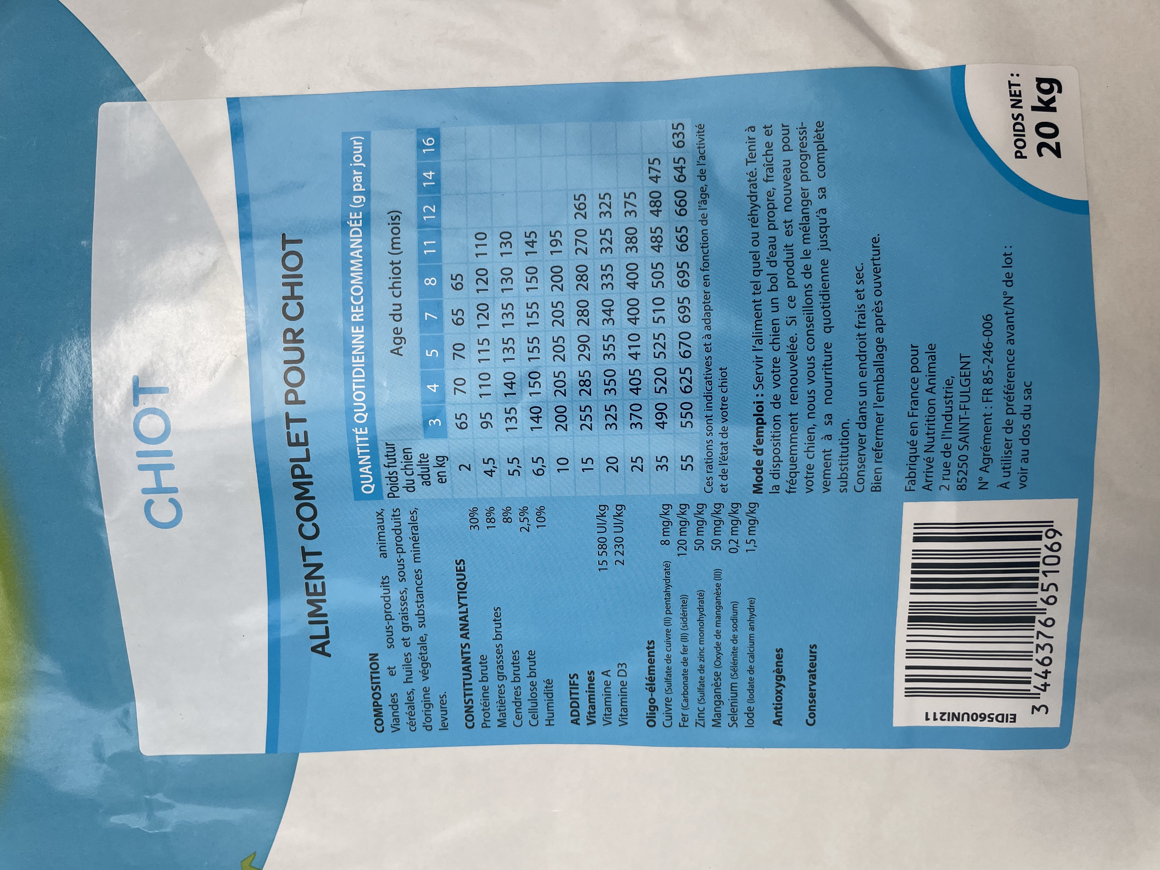La Marque profusion propose des croquettes de fabrication 100% française de qualité PREMIUM (haut de gamme). Le produit chiot se compose principalement de viande en 1ᵉʳ ingrédient, il a un taux de protéine de 30 % pour assurer une bonne croissance et un taux de matière grasse de 18 %, car grandir demande de l’énergie.